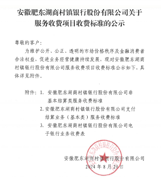肥东湖商村镇银行非基本结算类服务收费标准 |